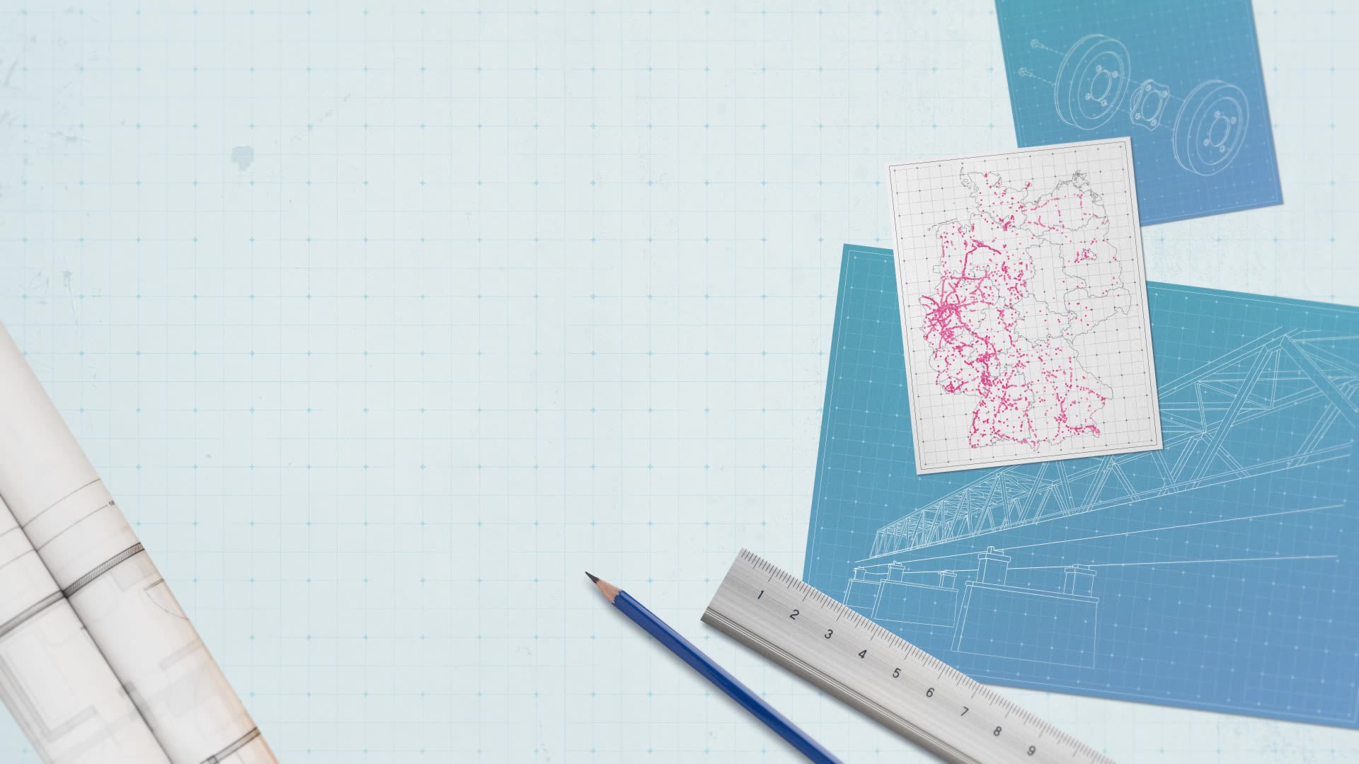 Rund 40.000 Brücken gibt es auf den Autobahnen und Bundesstraßen in Deutschland. Auf dieser Karte sieht es fast so aus wie das Straßennetz. Nur steht jeder Punkt (•) für eine Brücke oder einen Teil davon. Brücken auf zum Beispiel Landstraßen sind im Datensatz und in dieser Analyse nicht enthalten.