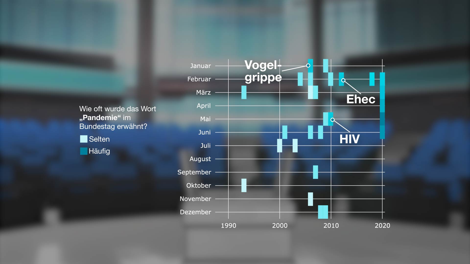 Die Grafik zeigt, wie oft die Abgeordneten seit 1949 über Pandemien debattiert haben.